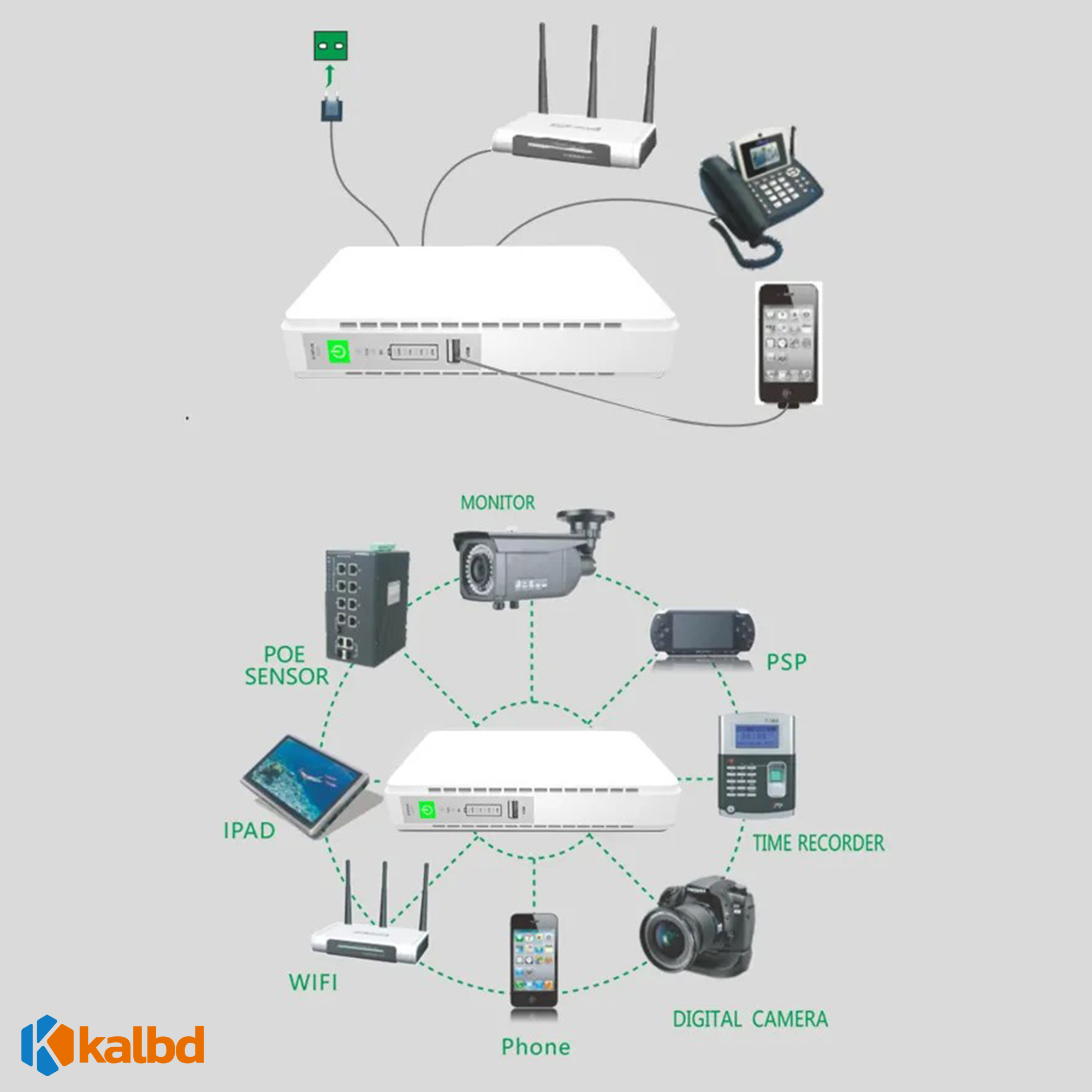 However, this is commonly used for seamless internet connection with Wifi Router +Onu/MC/Modem + switch during load shedding. It can also Protect your valuable router and ONU / MC from lightning & power SURGE using the SKE mini dc ups.