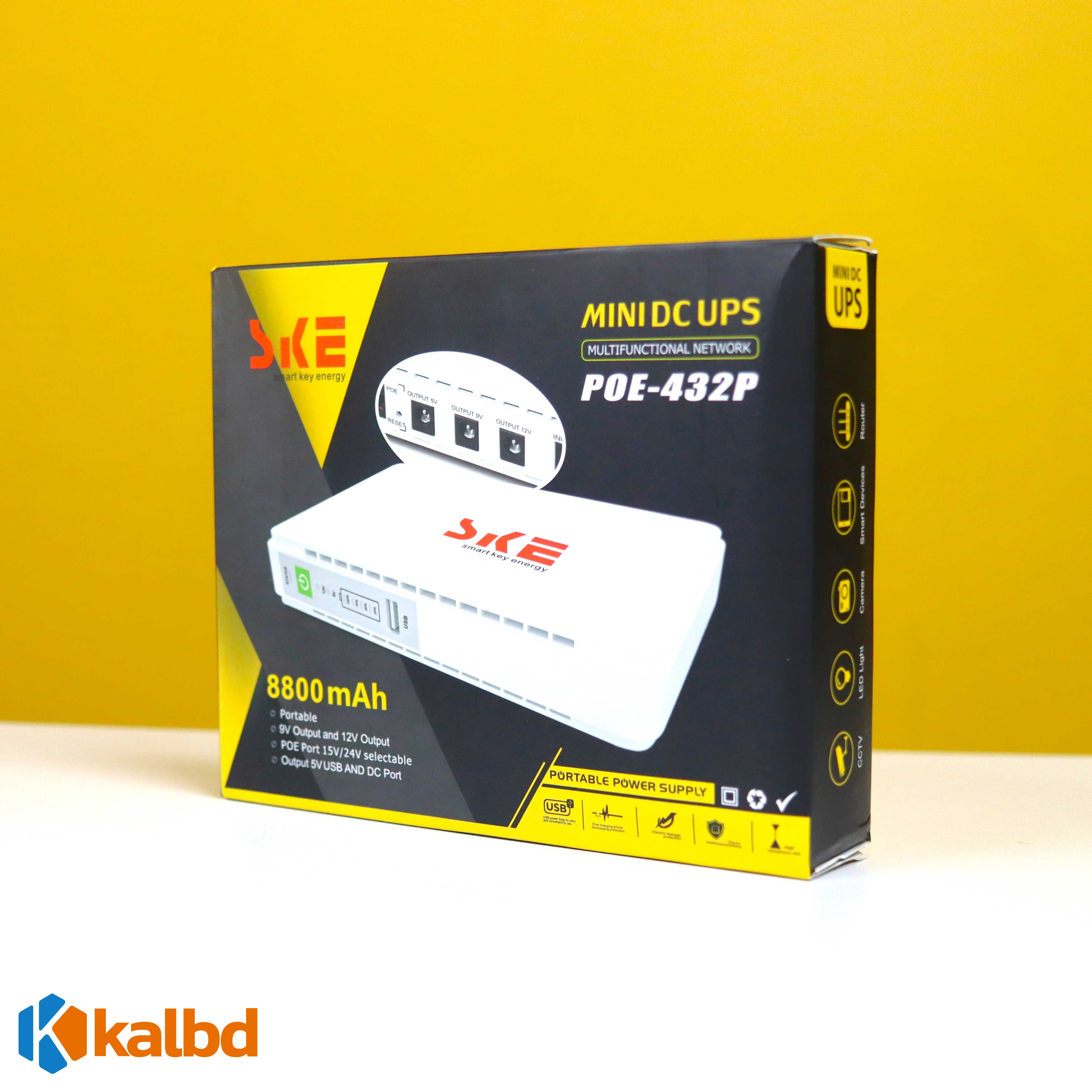 SKE 432P Mini UPS for Router+ONU+CC/IPCamera – 25 Watt 5v 9v 12v & PoE support 1524v